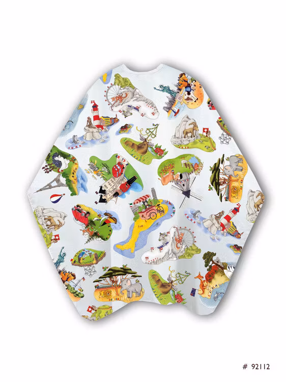 Kids world - Åk världen runt med denna kappan. Hitta klättrare i Österrike, se vilda djur i Afrika och leta efter delfiner i havet. Låt varje klippning bli roligare för de minsta med denna kappan.