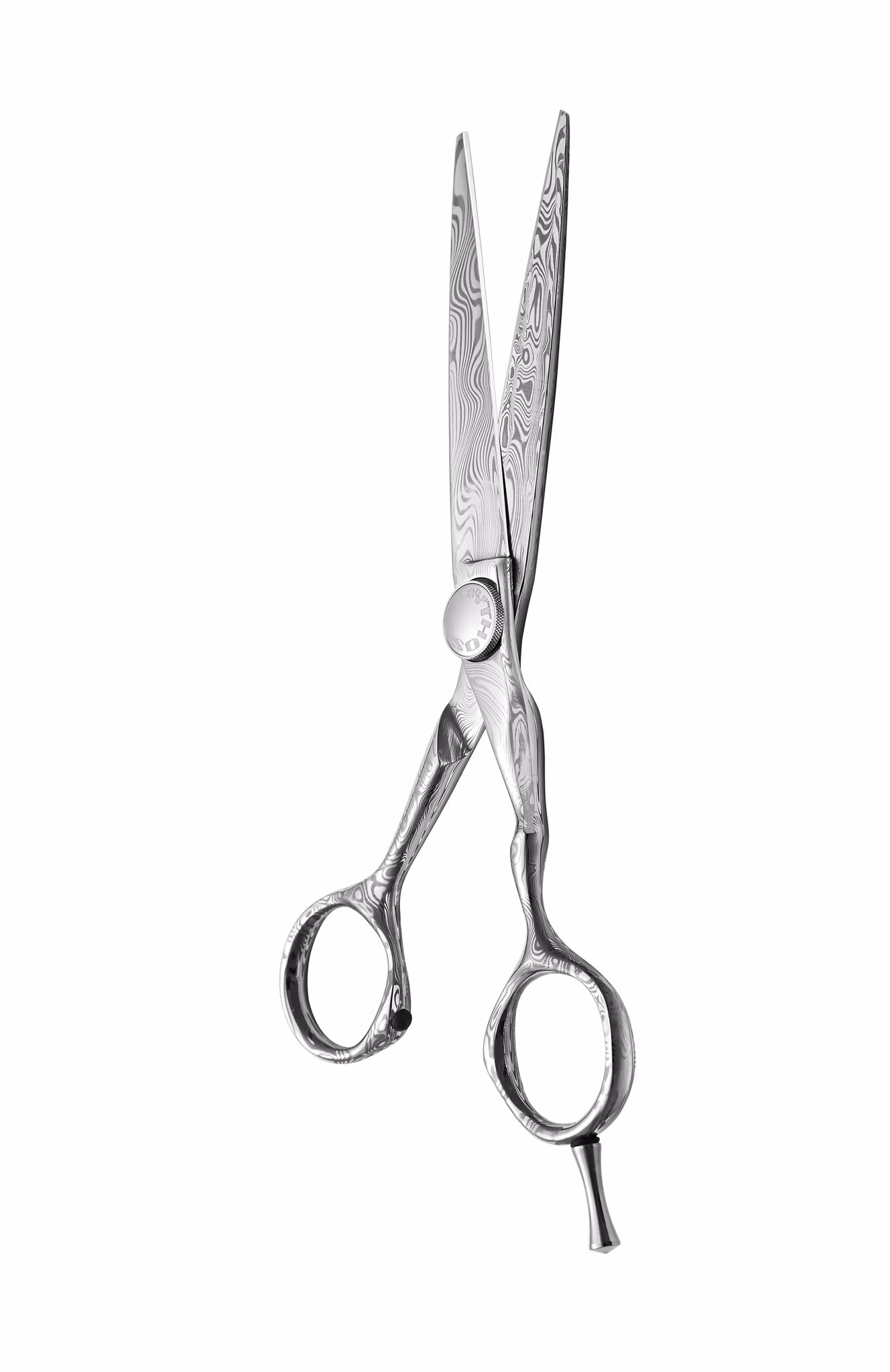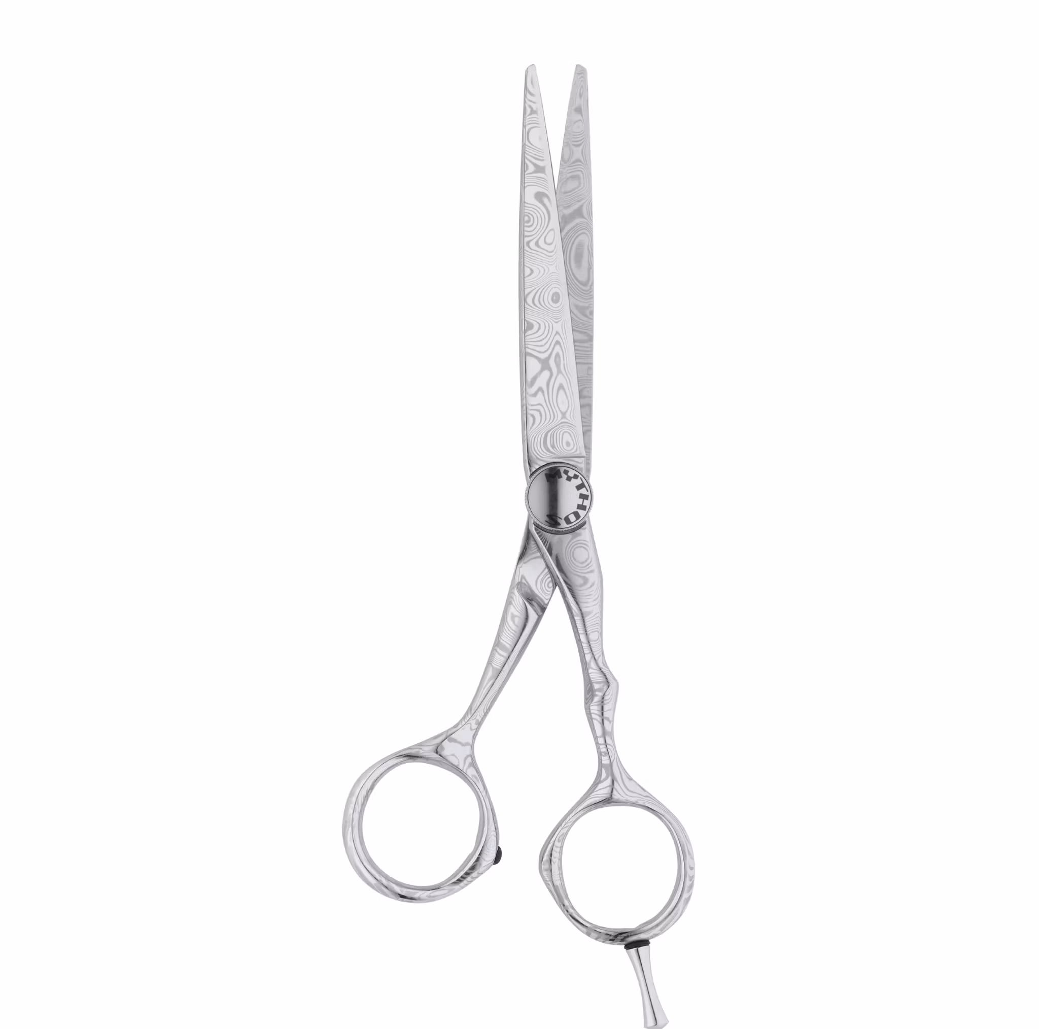 MYTHOS DAMAST Offset 6.0 Conblade - Mythos Damast är ett riktigt konstverk. Känd för sin speciella skärpa med extremt lång livstid, älskad för sin estetik. Varje sax är unik och har olika utseendé. Tillverkad av 100% Rostfritt Damaskus-stål i den traditonella kniv & saxstaden Solingen. Ett stål som blev populärt redan under 1600-talet för att tillverka de bästa svärden.